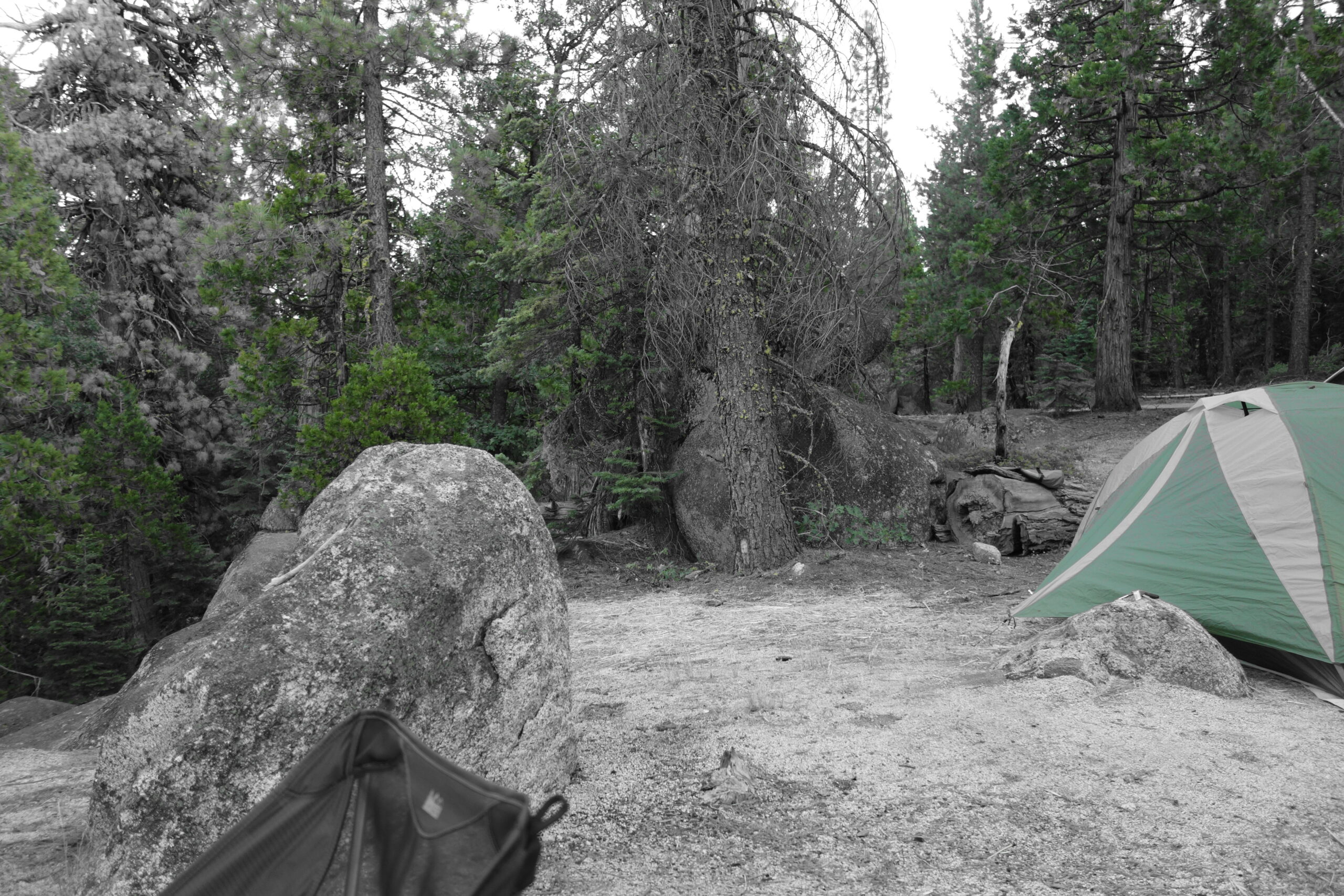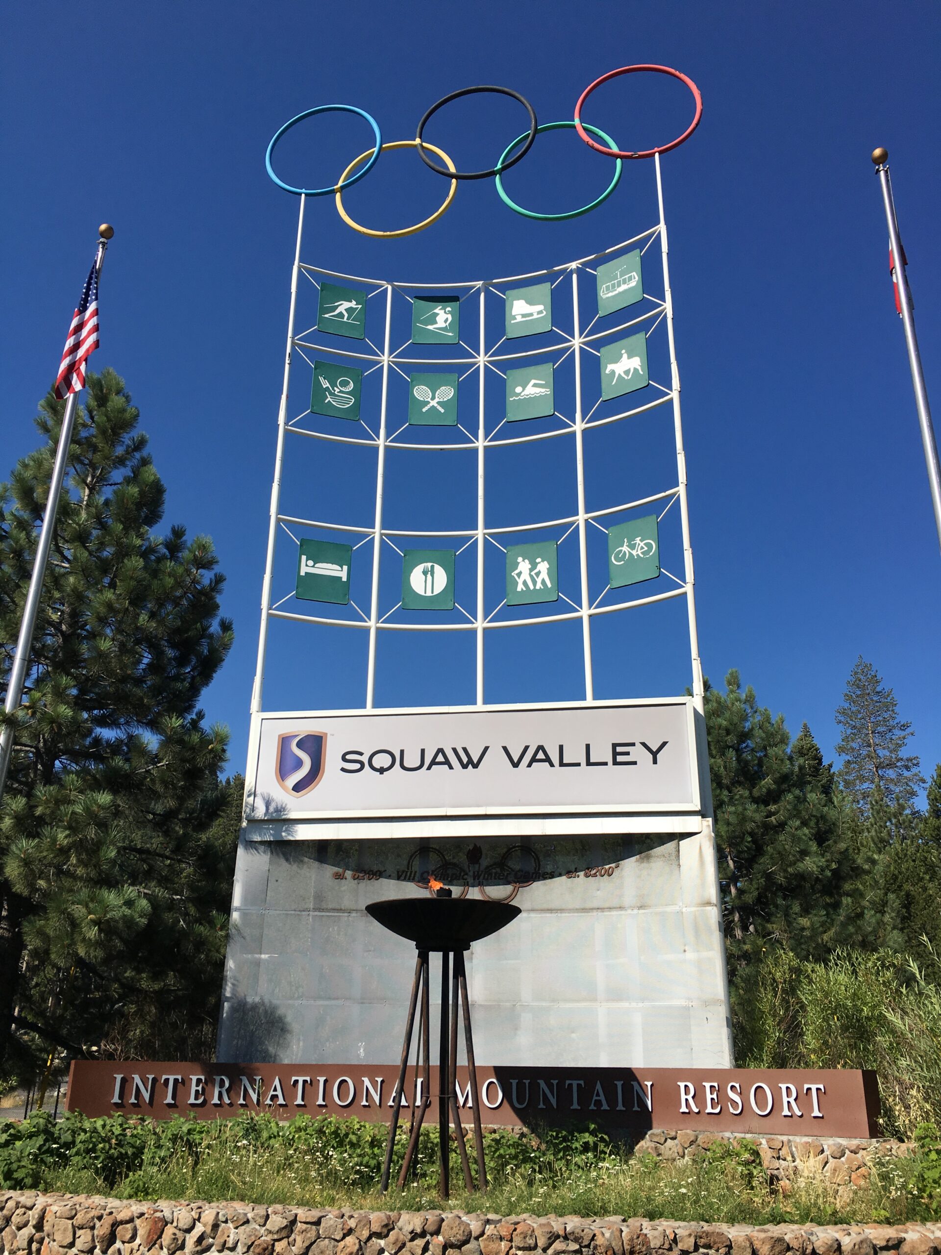 Using the budget provided by her employer, we booked a fancy hotel in Squaw Valley, home of the 1960 Winter Olympics. To start the trip, on Saturday afternoon we left Campbell and drove up to the Tahoe area for a night of camping and stargazing. There was a meteor shower going on, however it was a full moon so we didn’t get to see too much in the way of meteors. It was a nice night though, camping in the woods, and Megan and I both felt that was good to be back in the mountains. Strangely, there was an enormous number of bees everywhere we went and after a breakfast of scrambled egg and bacon and pudgy pies the bees cleaned up the dishes. We found out later that there was a sudden explosion in the number of bees town, partly due to the mild winter previously. I escaped unharmed, but Megan was stung in a vicious attack.