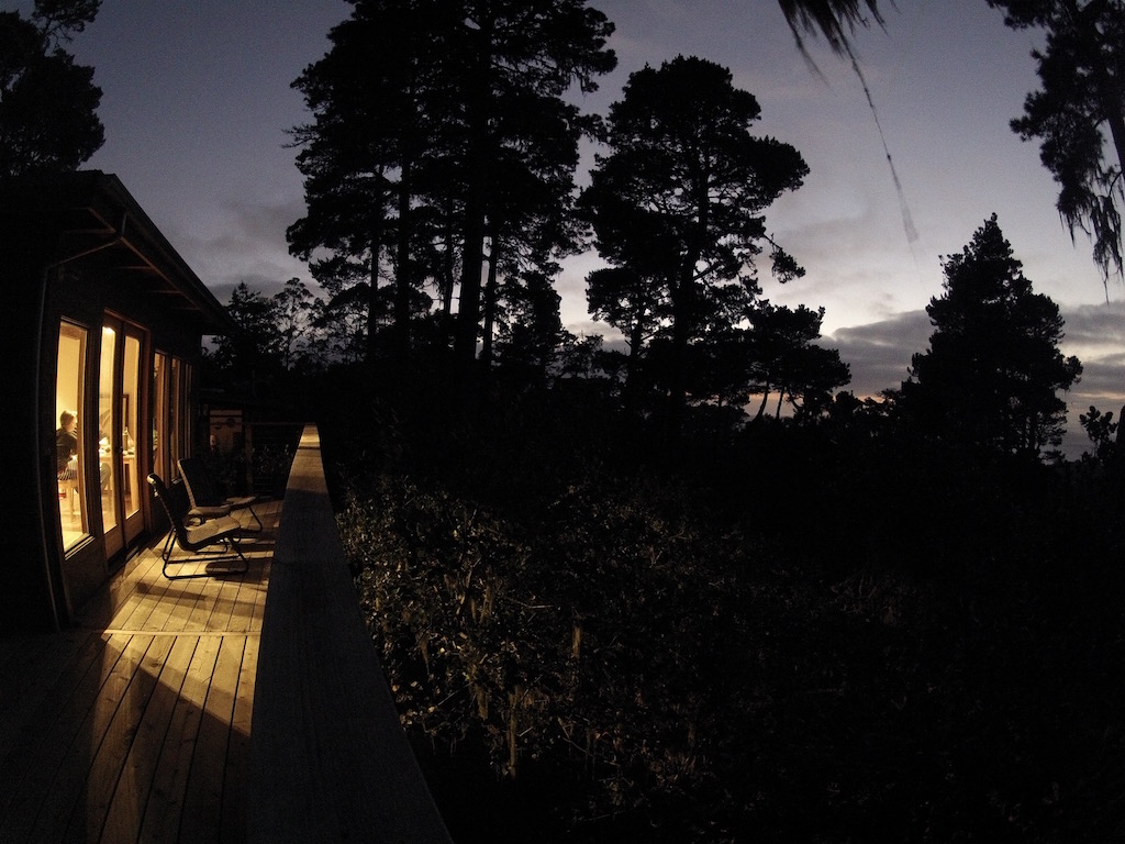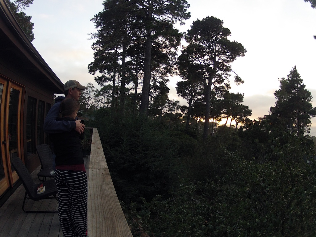 After out ex-hippie host checked us into the house up in the trees we broke out our Whole Foods sushi and had our dinner watching the sunset – from the patio – of a tree house -it was awesome.