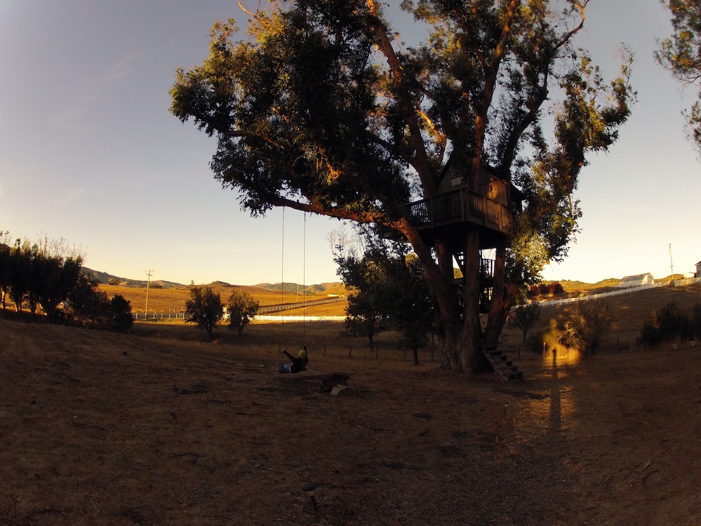 Spending a night sleeping in the tree tops was another first for us. At first it was really windy and slightly un-nerving, but then after thinking that this guy has had hundreds of guests and hasn’t lost one yet – we slept great. Well I guess I should say that I slept great, Jon was too busy listening to the great horned owls that were also in our tree. At breakfast, our hosts explained that they had originally constructed the tree house for their autistic daughter, and as the years past and she never used it, they listed it on Airbnb. They said that every night they make available is booked and that they have guests come from all over the world – sometimes they have to block days off just so they can get a break! What a strange world we live in – people will pay just under $300 to stay in a tree house with no lights (except battery lanterns) and no bathroom… we are some of those strange people as that is exactly what we did. The tree house was very sturdy and well built and had a deck that almost went around the whole thing. There was a little sitting area with a couch and books and the area was decorating with eclectic nic-nacs. The sleeping area was up a ladder to a loft and was a giant feather bed. Before I said there was not a bathroom, but there was a little camping toilet thing that you could go into should you not make it to the main guest bathroom down below in the barn – that was located in another little room next to the sitting area. To top it off there was a fantastic tree swing to accompany this awesome tree house.