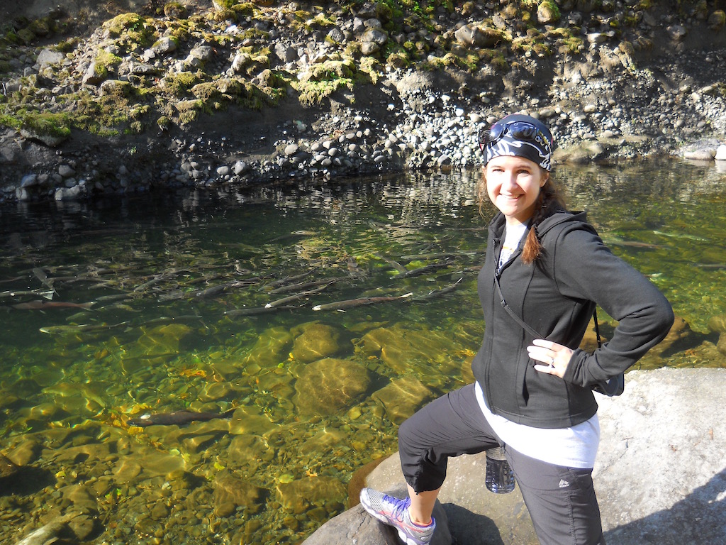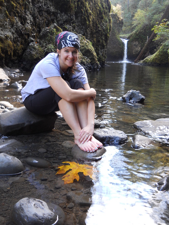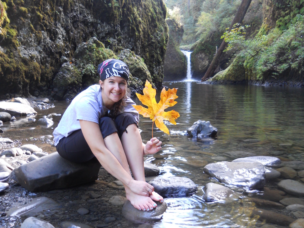Today was the day we got to test out our hot new ride. Leather jackets, boots, stylish Harley scarf (for me), sunglasses, and helmet radios and we were set! We headed northeast to the Hood River area to explore some hiking trails and waterfalls. While hiking Eagle Creek trail I kept hearing a lot of splashing, I went to the river and saw dozens of giant fish flopping around in about 6 inches of water. Naturally, from being out of town and not really being aware of what season it was, I said “oh my gosh Jon! There are huge koi fish or something over here!” Another hiker kindly told me that they were not giant koi fish but rather the salmon that make this same journey every year. Oh right… Salmon. Wow did they smell! They were actively decomposing as we watched them struggling to make it higher up the diminishing stream, their lives purpose. It turned out to be a beautiful fall hike with many waterfalls to enjoy. Back on the windy mountain road we stopped at a fruit stand to sample a “huckleberry” and heard about someone’s grandpa who hikes 10 miles up to this certain bush during a certain time to find these certain berries. The asking price for a small bag of these “rare gems” was $25. We skipped out on buying the most expensive fruit known to man and settled for a few chocolate malts instead. Back in Portland and once we had showered, we went to “Noble Rot” for dinner. It was a classic Portland “back to nature” place as the veggies for the food were grown in a garden that they kept on the roof. We had a delicious mac and cheese and butternut squash concoction and my fancy drink even came with an edible flower in it.