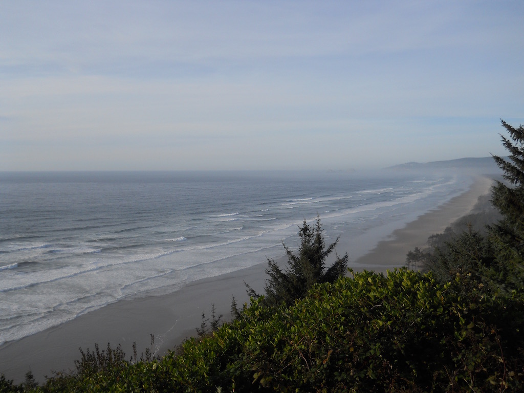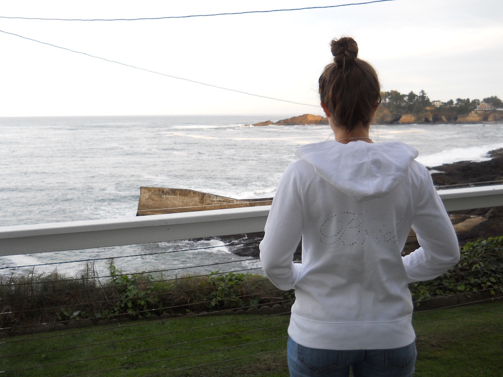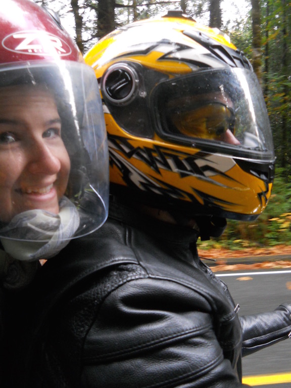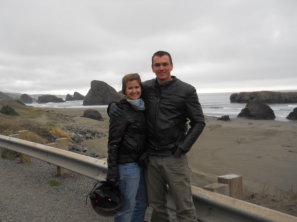 Today was the day we left Portland to start on our coastal adventure. Before the trip could begin however we had to figure out how to put all the stuff we brought into the little saddle bags on the bike. After a little rearranging we managed to get the lids to latch and we were ready! With our “JUST MARRIED” sign strapped to the back of the bike alongside my bouquet of beautiful flowers we headed out of the city and into wine country! Our first stop was at Elk Creek Vineyard which was extremely picturesque and peaceful. Sweet Jon sat beside me as I enjoyed a sampler flight of Pinot Noir wines… cheers to being the passenger on the motorcycle! As we left we of course had to be sneaky and sample the grapes that were still on the vine, yum. We continued to head to the coast and briefly stopped in a small town to get a little caffeine. There was not much to see to say the least and most of the stores were out of business. We headed over to one store with a sign that said “coffee” and had a lot of random stuff in front of it. There was also a little old guy sitting in front of the store with his eyes closed and wasn’t moving, and we were hoping he was just sleeping… We went into the store and were surrounded by the most eclectic collection of “treasures” ever! Looking around we finally saw the small coffee pot on the store counter with a sign that said “coffee 75 cents.” The seemingly sleeping older gentleman said that the guy who owned the shop had been gone for a couple weeks and we were to leave the money on the counter. It may not seem like it but the whole situation was SO funny! Jon drank two cups and left the money on the counter.