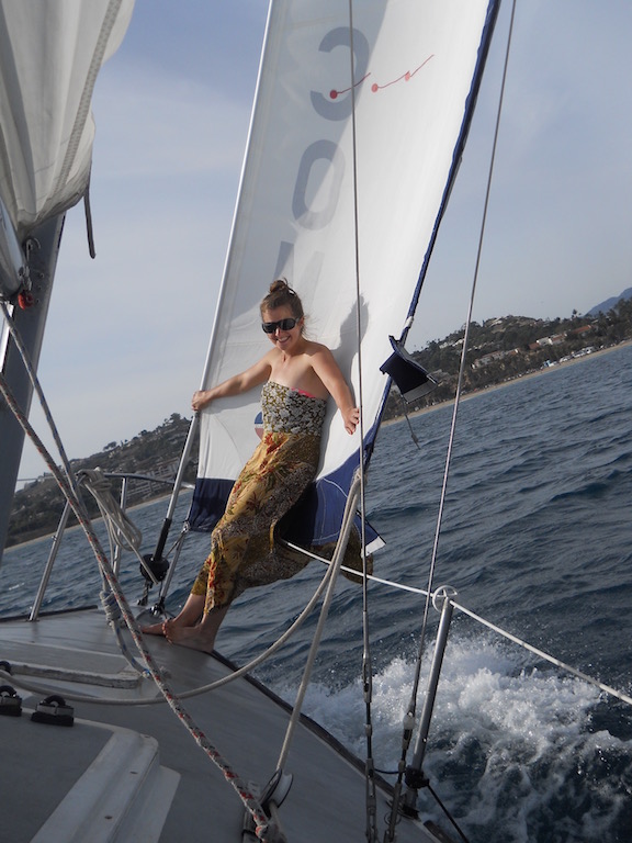 Breakfast at the hotel and then we took off on beach cruisers (SO much better than our last bike experience!) cruised around town, stopped at a giant farmer’s market, more latte for lovers breaks, and then an ocean swim in the Pacific! Santa Barbara really reminded us of Mexico – it was so great! At the arranged time we headed to the pier for our private sail 🙂 We had an instructor that was really laid back and cool, Jon took the sails and headed us out into the big blue! I did more hanging out on the boat than actually participating in the sailing technicalities. Jon was a pro by the end of the trip and now he wants to buy a sailboat.