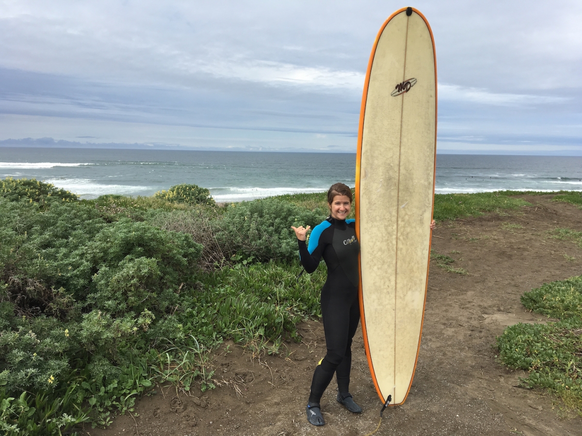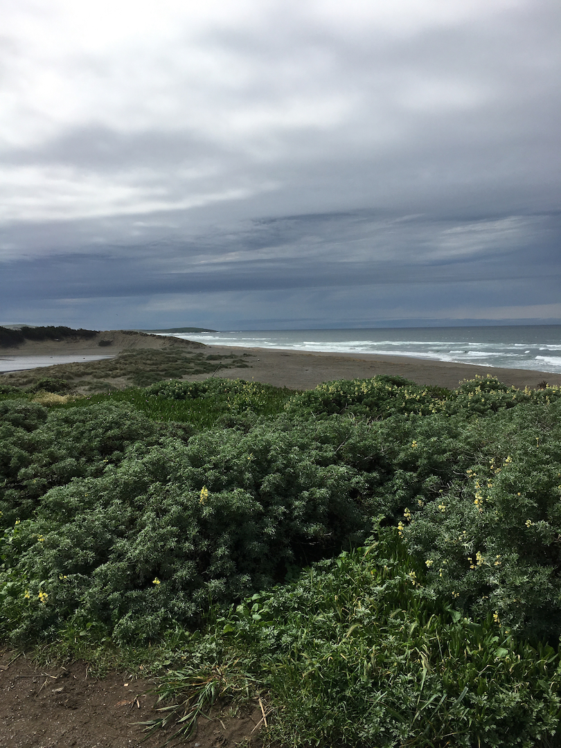 The following morning we hit the road and made it up to Bodega Bay and Salmon Creek around 11 am for some surfing. Up to this point, most of our wave riding career has been spent in the friendly waters of Santa Cruz. The South facing Surf City (aka Santa Cruz) has countless beginner friendly breaks rolling in within the confines of the sheltered Monterey Bay. I’m no ocean expert but I’m guessing this means that much of the turbulence and power of the Pacific is filtered out to some extent and the water has time to warm in the shallow water. Salmon Creek on the other hand faces West, straight out into the Pacific and we felt the difference. The water felt 10 degrees colder, even in our wet suits and the currents were very powerful. Add in a strong breeze and it made for challenging conditions for us. Once, while paddling in, Megan was blindsided by a wave that rose from nowhere and actually broke on her at a full 90 degrees relative to the wave she was trying to catch in toward the beach.