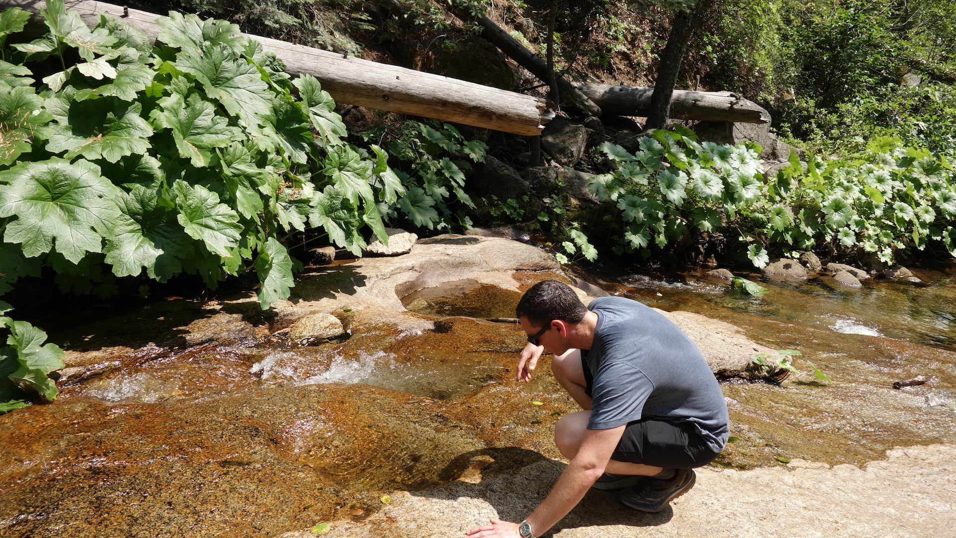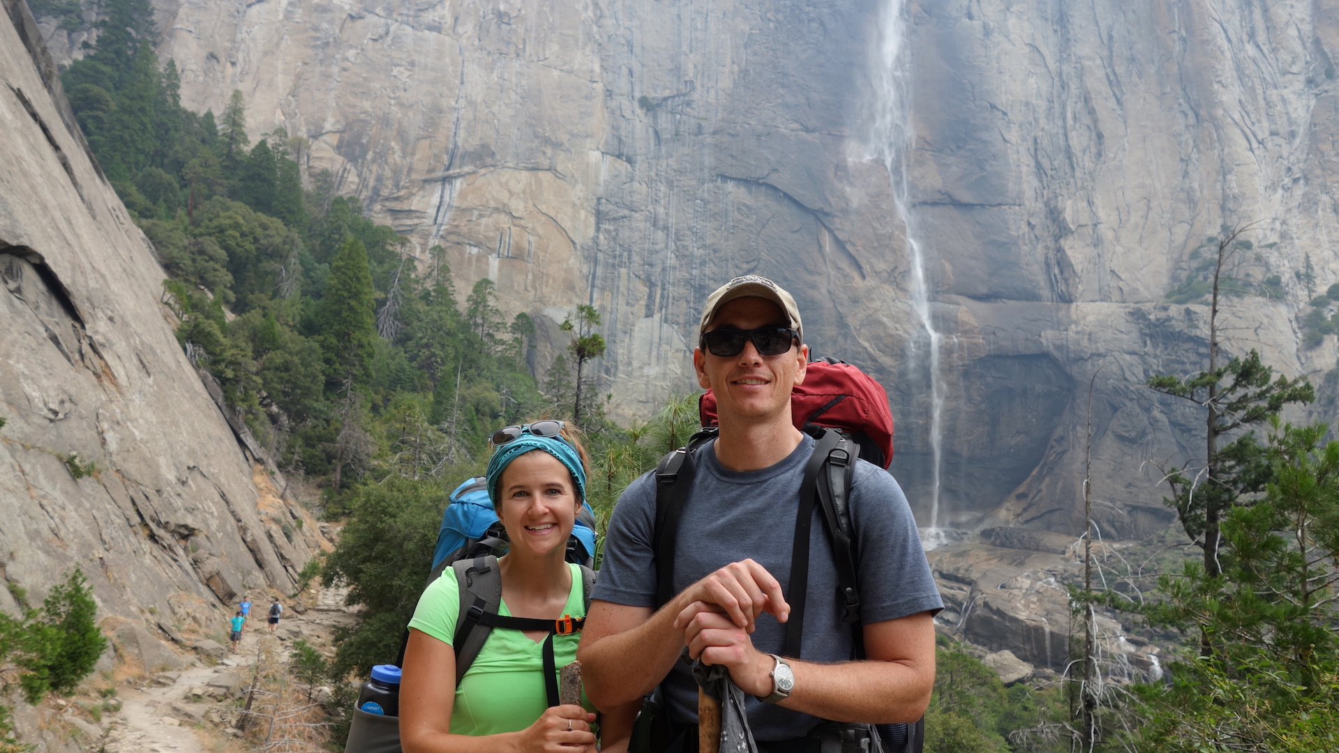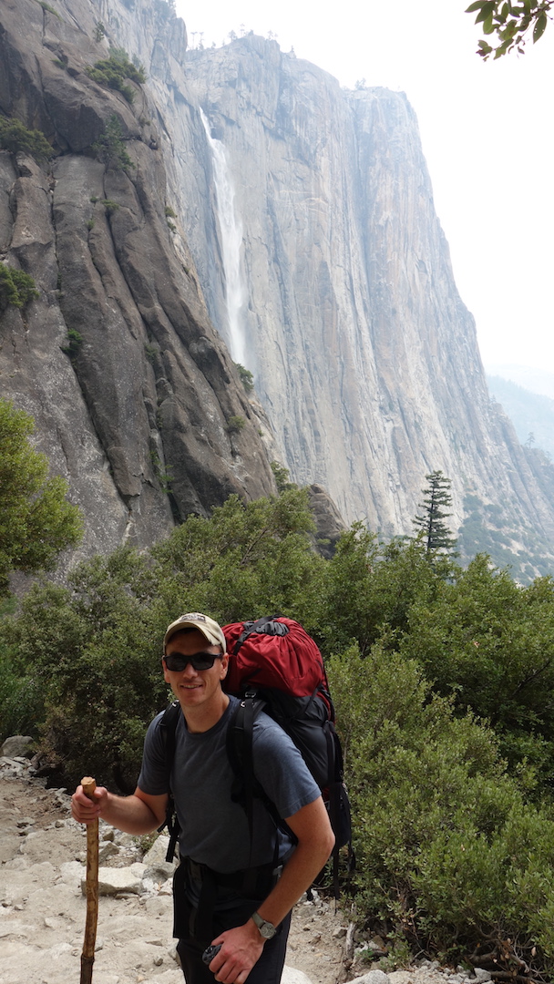 The falls were crowded and once on the trail down, the crowd factor became much more apparent. The scenery was great though. Monday was just as hot, and we were both swatting at bugs most of the day. By the time we were a mile or two from the base of the climb, we were overheated and hurting from out packs. Megan especially was not having fun. We made it to Camp 4 though and re hydrated and lazed around for a while resting our legs.