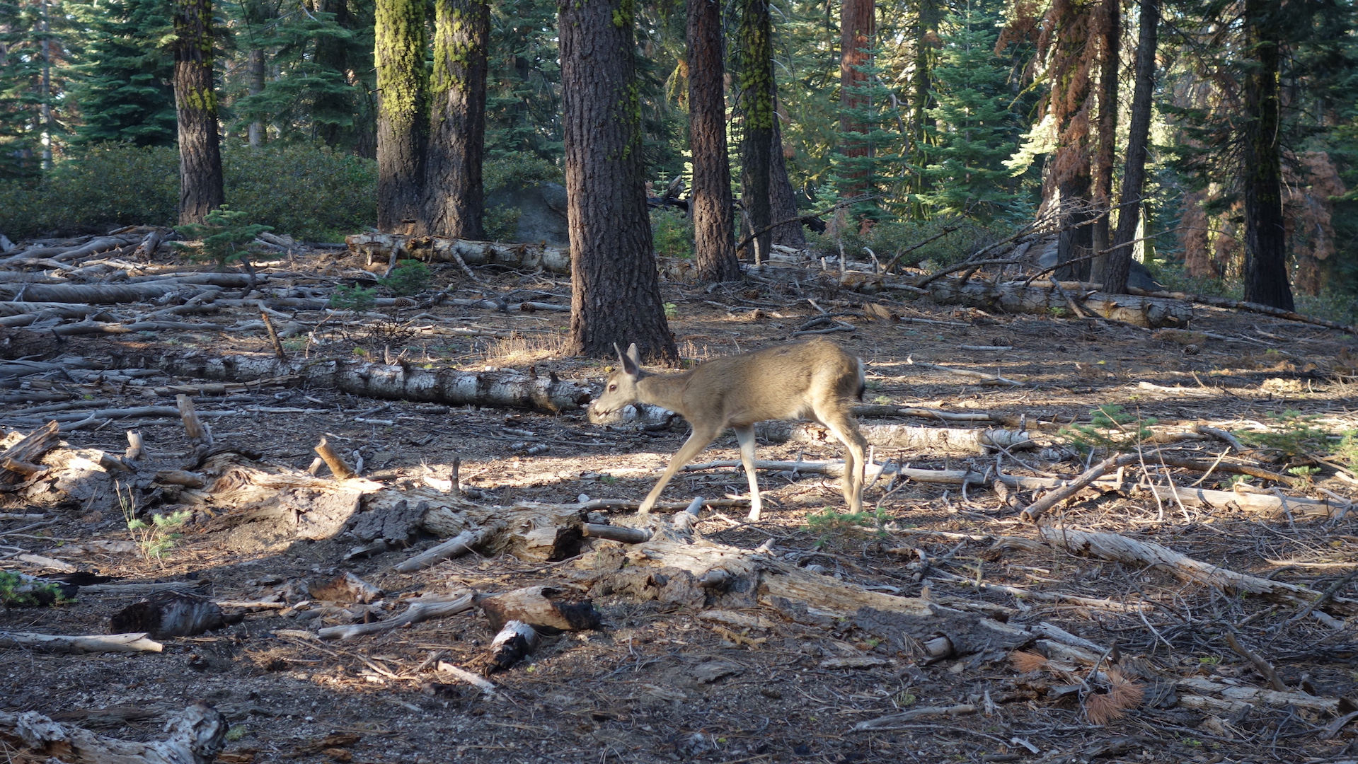 Sure enough, within 10 minutes of settling down, we had a visitor up close to the tent wall. I quickly got up to scare it away, knowing that I was going to zip open the door and be face to face with a bear that sounded about 10 feet away. My heart was pumping, I unzipped the door, and Bambi, a tiny curious fawn was looking ready to come into the tent with us. I threw some sticks to scare it away and went back to bed but all throughout the night and into the morning, this fawn just wouldn’t leave us alone. Twice I was actually able to hit it with sticks, and I was getting up so frequently, always a bit unsure if it would still be the deer, that Megan started to sleep right through my thrashing and throwing of stones. The next morning the deer was still hanging around our camp. It was very curious and just kept coming back.