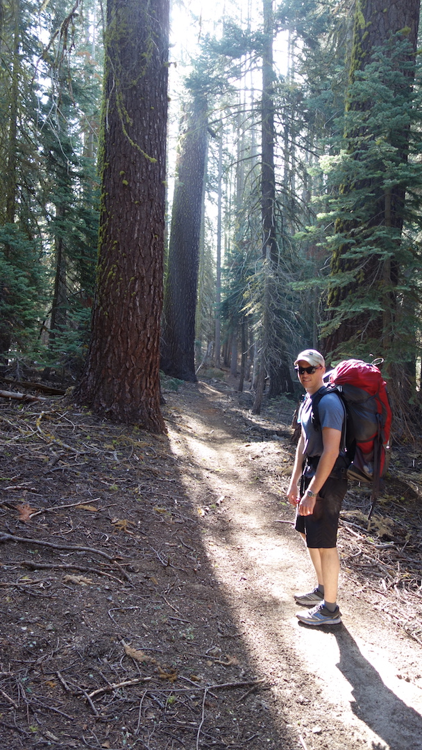 Once on the trail Megan and I continued this line of thought and agreed that on paper, and in real life, our lives are pretty awesome. Good prestigious sounding jobs which pay well, regular weekend trips to hotels in the city or on the beach, flying to CO to visit friends, and taking extended trips to backpack in Yosemite and soon to be in Chile! Things seemed to be going well. Then we realized our packs were heavy, the air was smokey, the sun was hot, and the trail which I had assumed would be all downhill into the Valley was most definitely, not, downhill.
