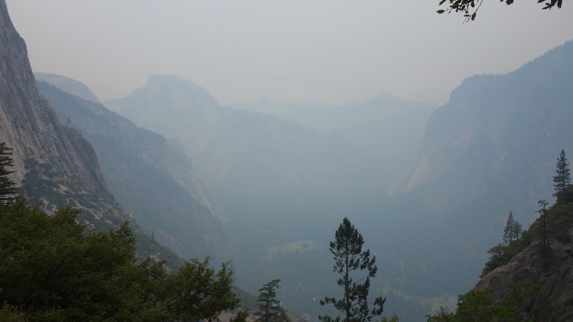 Pulling into Yosemite for the first time was very cool. Nearing the park we had been noticing a lot of Thank You signs to the firefighters in the area and lots of evidence of recent fires. As usual during the summer, much of California was on fire and the surrounding Yosemite area was not excluded from this. Unfortunately one of the first things we noticed in theValley was how smokey it was. Visibility was pretty low and my eyes and sinuses were feeling the poor air quality. Regardless we took in the first views of El Capitan and explored the Valley area by car for about half an hour trying to get our bearings. By this time everything in the Valley had closed for the evening except for the store and we decided to head to setup camp and sort out the permits and transportation in the morning.