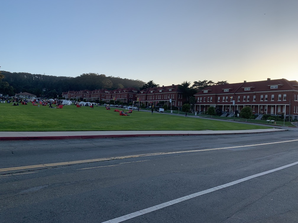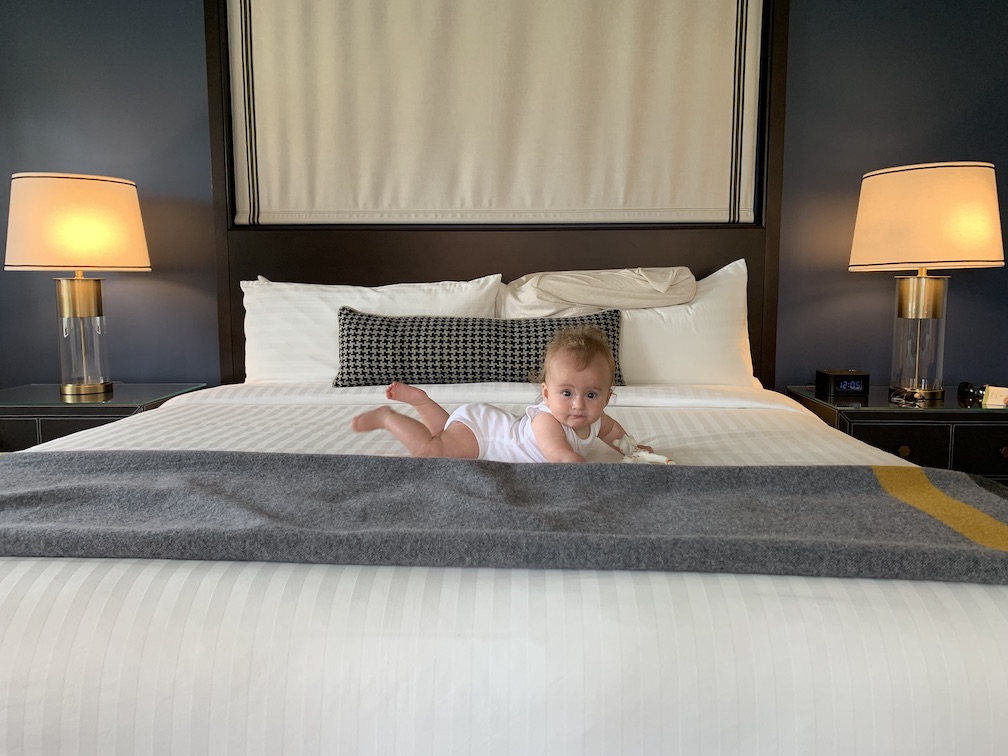 We had been to the Presidio many times in the past but I had never noticed the Lodge hotel which is situated at the Northern end of the Main Post Lawn, right next to the Walt Disney Family Museum which we toured two years ago. The Lodge is one of two large lodging options in the Presidio and we had an amazing visit. Our room was on the North East corner of the building so we had a direct view of Alcatraz and the Bay and easy access to a huge front porch which stretches the length of the building. Each of our two nights we enjoyed their wine and snacks on the front porch and got to watch the kite surfers and sailboats near Crissy Field. This was our first time with Jane in an official hotel and although we had a suite, there wasn’t a second room so we had Jane sleep near the bathroom. She struggled sleeping in the new environment but overall it went ok.