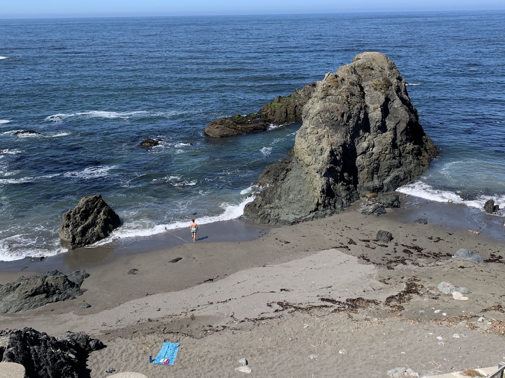We loved staying in the Presidio and went to a nice dinner at a Spanish style restaurant at the top of the main post. From there we went to our beach house for 2 nights near Bodega Bay. That place was awesome and really relaxing from what I recall. Phil had stayed in a neighboring unit and recommended it, and it didn’t disappoint. We had a stairway down to the beach and there was a lot of sea life in the rocks at low tide. I remember I got really into gathering sea weeds which I intended to make into a salad. Some pot heads from Oakland we met on the beach told me all about them. I also remember taking Jane out into the water at low tide one morning to look at some huge star fish which I really have fond memories of.