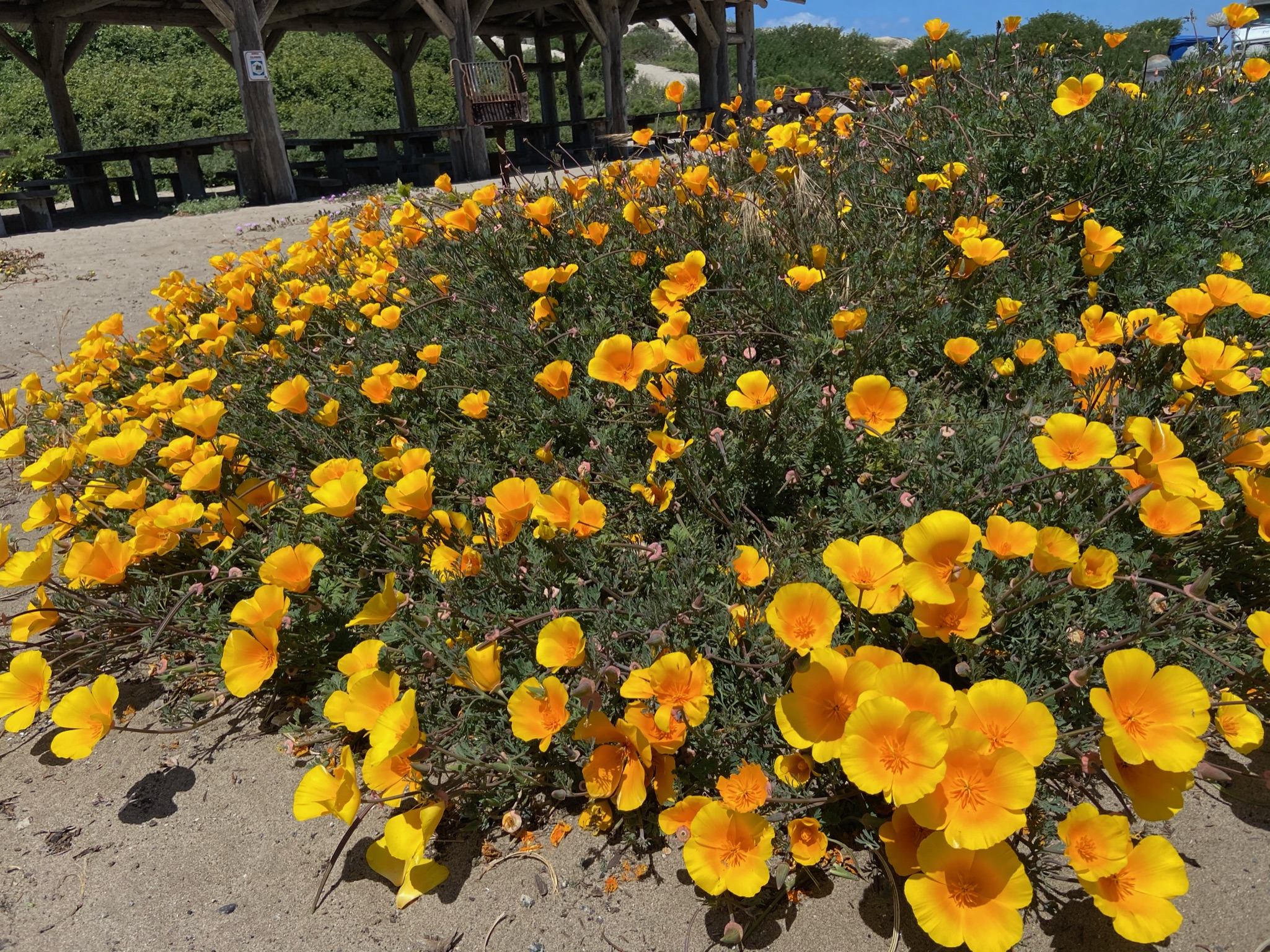 We’ve taken quite a few trips down to Sunset Beach over the past year and it has become one of our favorite ocean spots, so we are familiar with the area. Along the way we passed the exit for Capitola and swung off the highway in order to stop at Gayle’s bakery for some of the breakfast biscuit sandwiches which we really enjoyed during our extended stay in Capitola earlier this year. Jane of course got a cookie at the bakery and we got back on Highway 1 to finish the short drive. We arrived a bit too early to check in so we spent an hour or so at the beach before Jane drove us the mile or so back to the ranger station to officially checkin before setting up camp so Jane could nap.