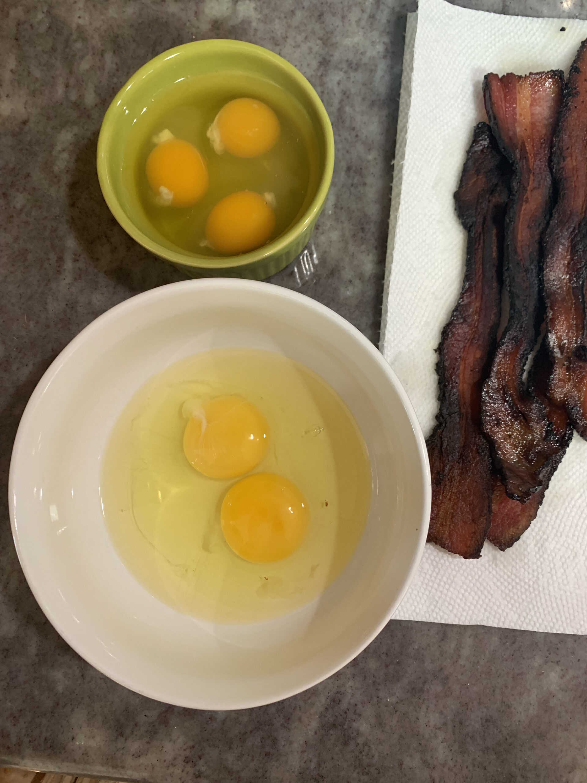 Sunday morning we cheated a bit and cracked open some of our fancy pastured organic eggs. I did a side by side with some ‘free range organic’ eggs we already had. Neither Megan or I could taste a difference, but its nice thinking that I could.