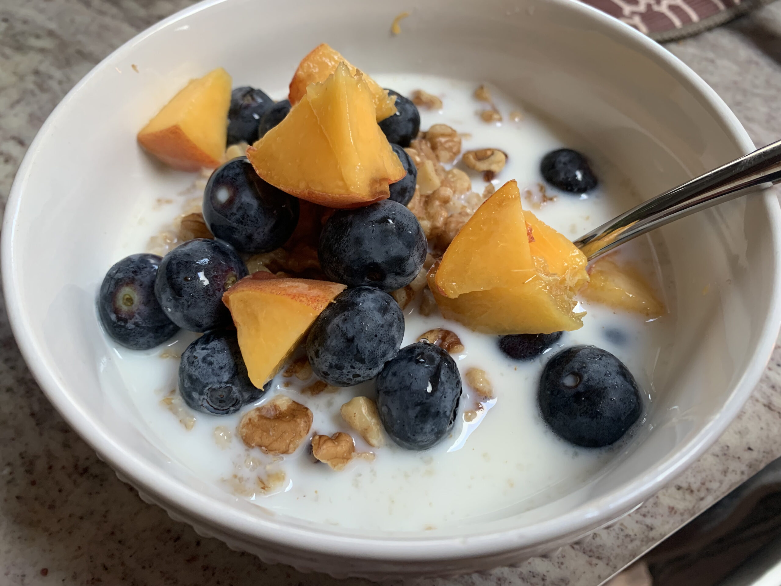I’m typing this at 10:30 pm with a full stomach. Oatmeal for breakfast was good. It had blueberries, peaches, and cinnamon. Jane calls it Oap…meal and she liked it too.