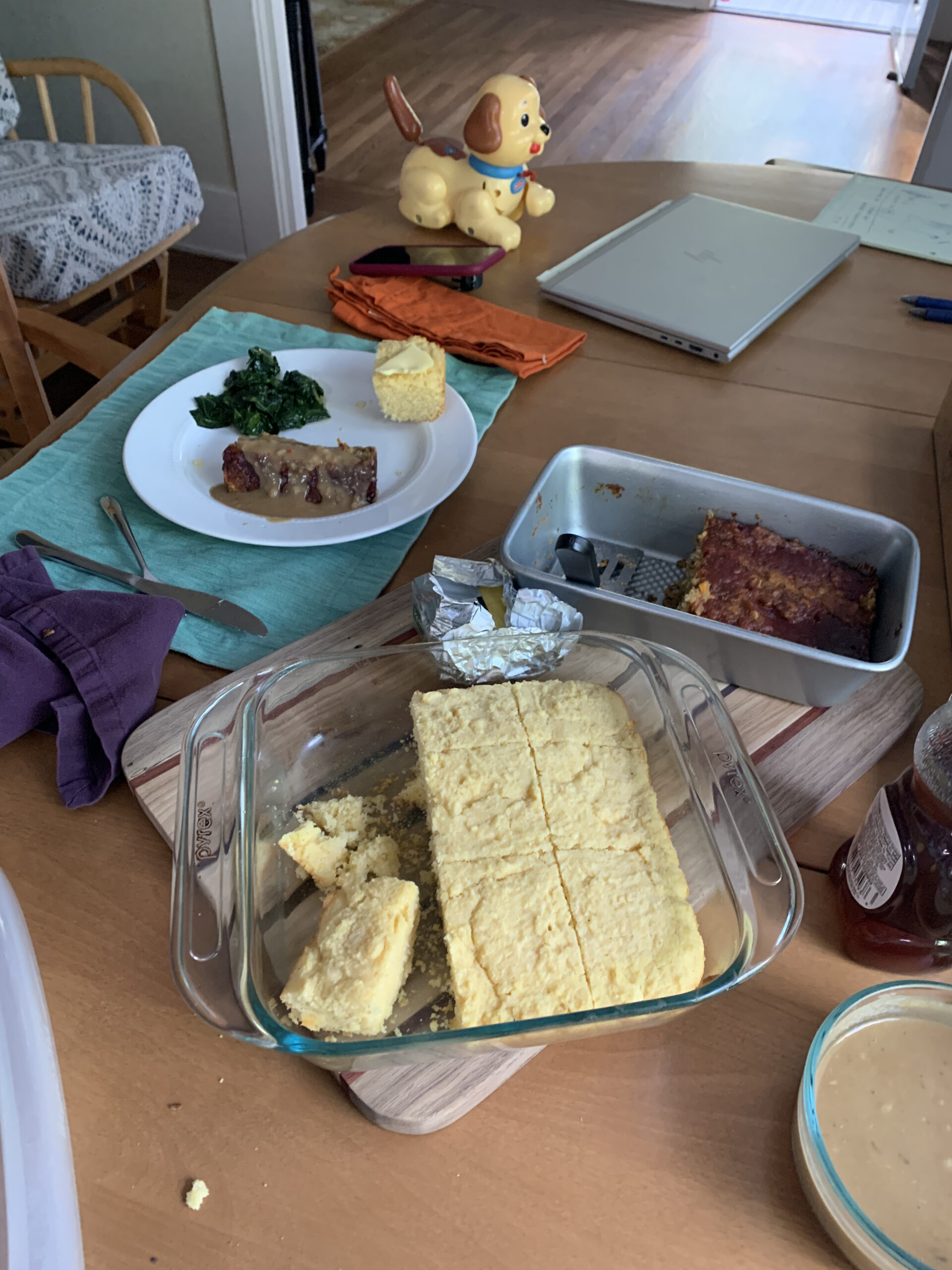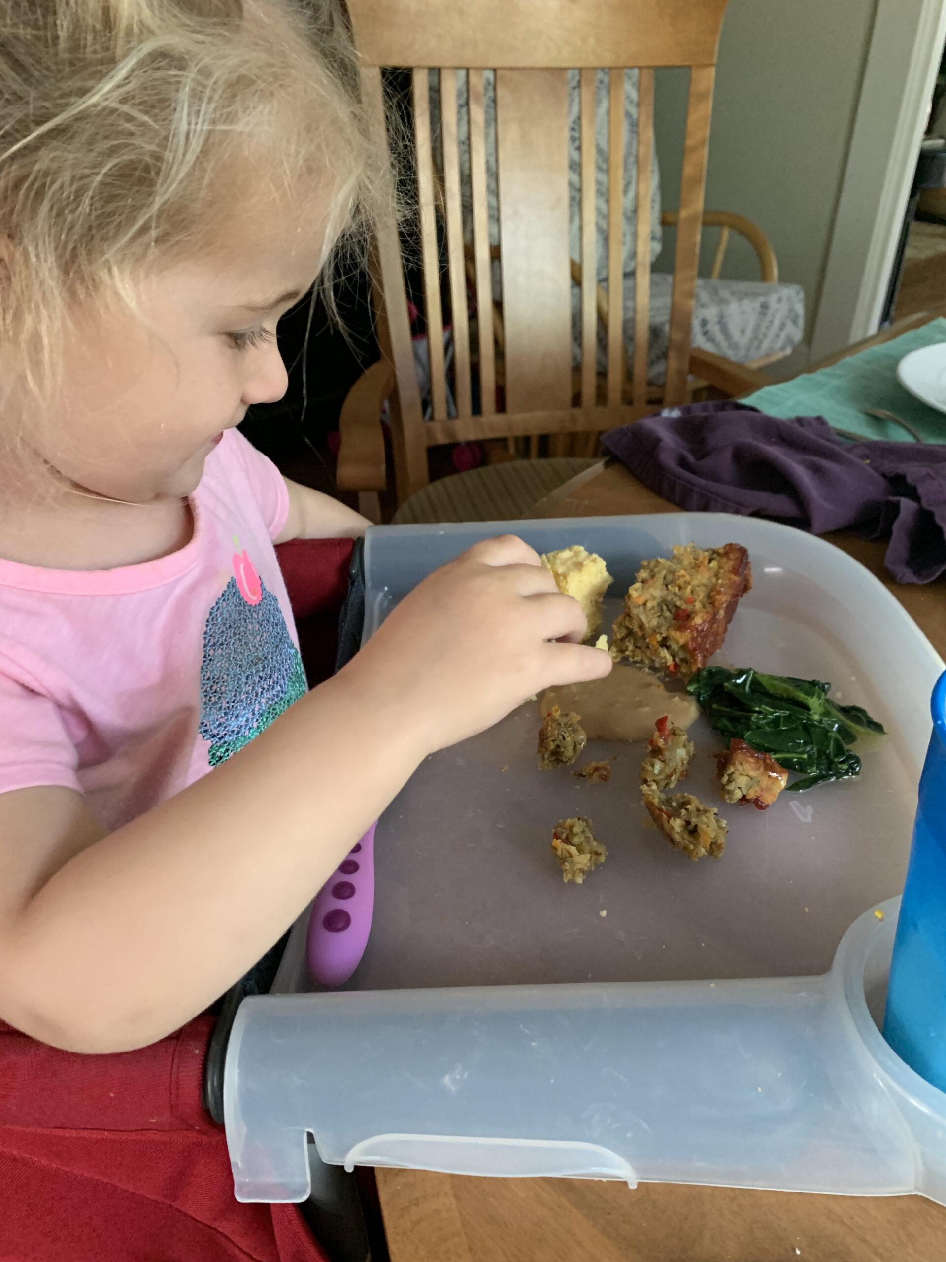 We’ve fallen off the menu and planning wagon a bit more. Megan made blueberry lemon scones for breakfast. Being Saturday, I took Jane to the farmers market for a honey stick and picked up two vegan mushroom tamales from a stand claiming to grind their own grains. We had these for lunch in addition to some leftover pizza.