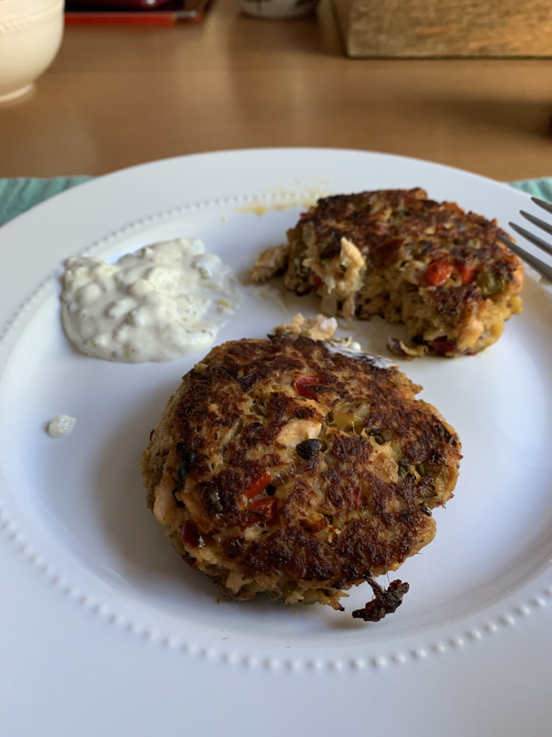 Dinner was salmon cakes. I made these. Prep started around 4pm since there are several steps and each requires cooling post cooking in the first phase. By 5pm Megan mentioned to me the house was smelling great and by 6pm we fried them up in the pan and then indulged. They tasted great. We had them with no other sides given the quantity of veggies inside, but we did add a tarter sauce Megan mixed up from mayo spices and pickles.
